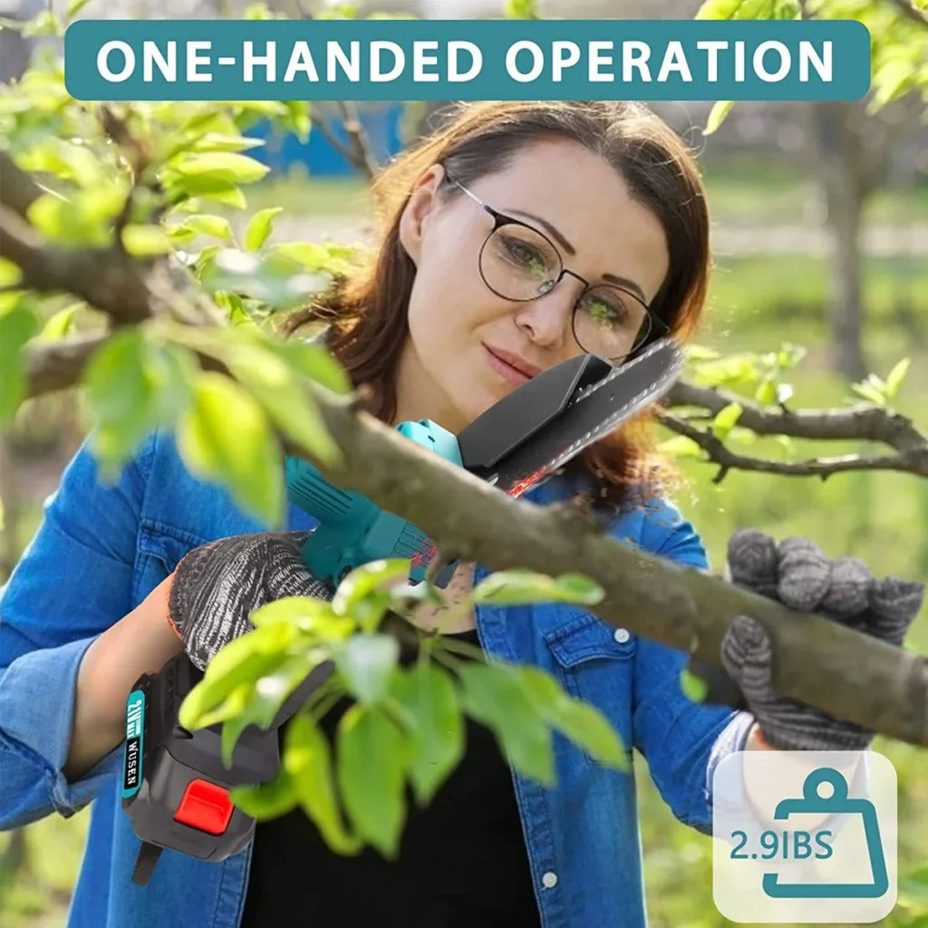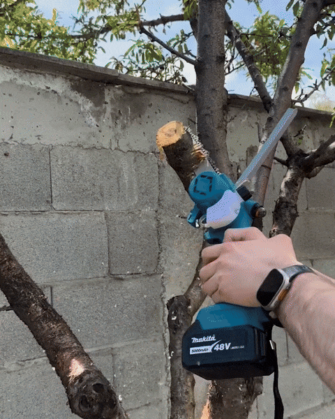 Scie d’élagage compacte et performante, conçue pour faciliter les travaux de coupe dans le jardin ou à la ferme. Elle fonctionne sur batterie rechargeable, offrant liberté de mouvement et efficacité sans fil. Son design ergonomique permet une prise en main facile et une utilisation prolongée sans fatigue.